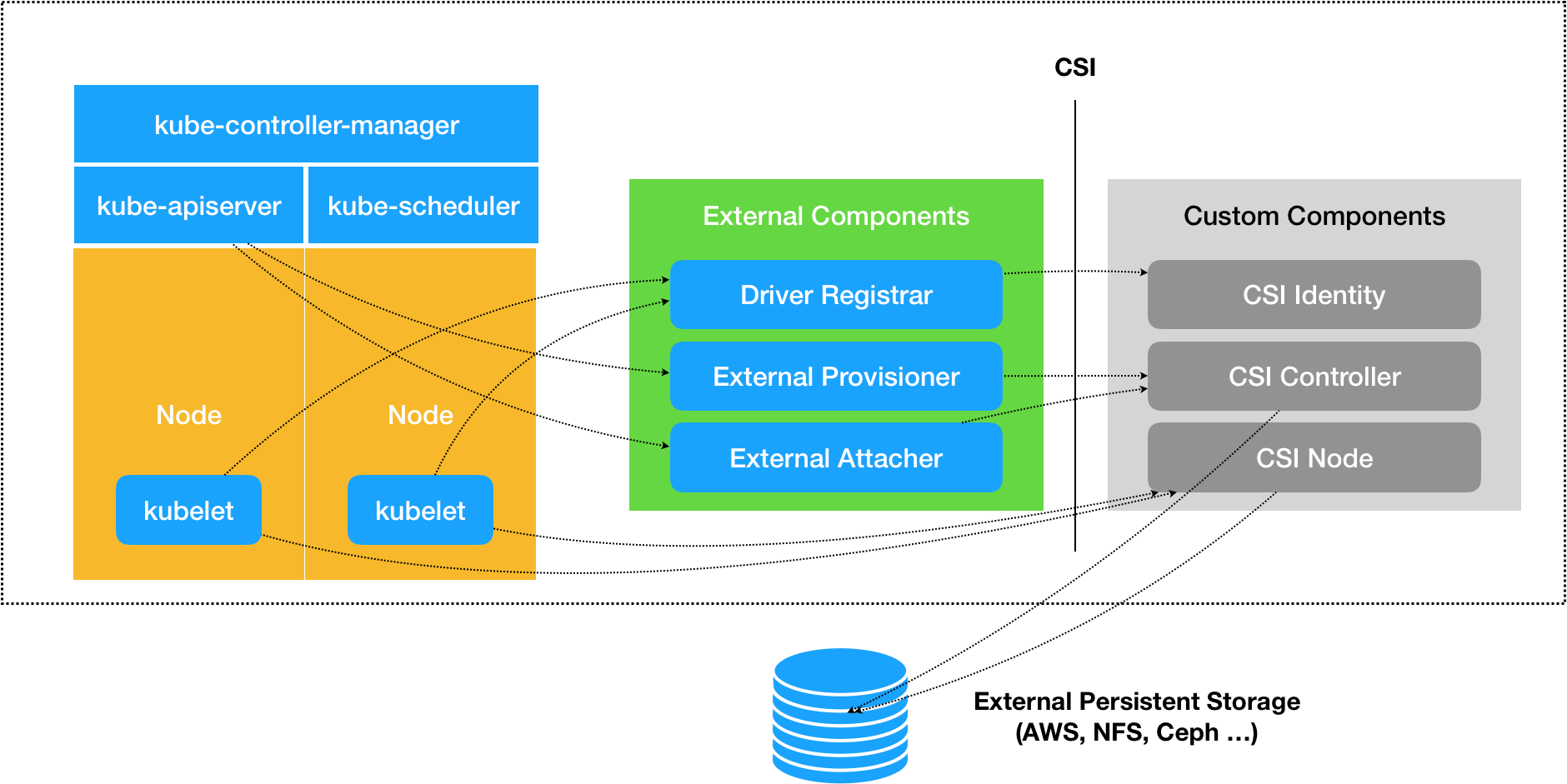 - 通过DeamonSet在每个节点上都启动一个CSI插件,来为kubelet提供CSI Node服务