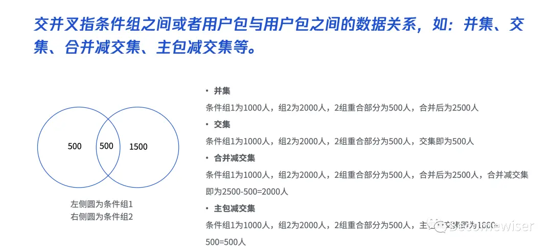 这是在可视化、自助化选择用户条件后,通过与其取值范围进行比较经计算生成人群数据包的一种形式。