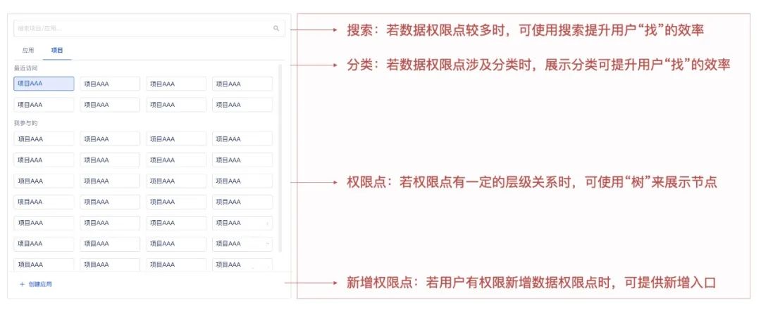 🌰举例,以应用项目的纬度控制用户可访问的数据范围。