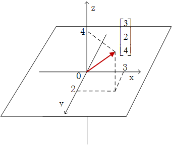 由此可见,向量中成分的个数就是向量的维数。因此,我们进一步推广下去,还会有三维向量,如:,它用来表示三维空间中的一个点,或者在三维空间中以原点 (0,0,0) 为起点,到目标终点 (3,2,4) 的有向线段,如图 2 所示。当然,以此类推还有更高维的向量。
