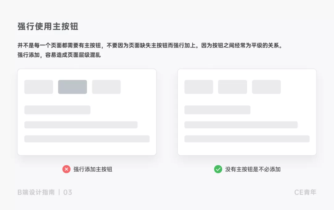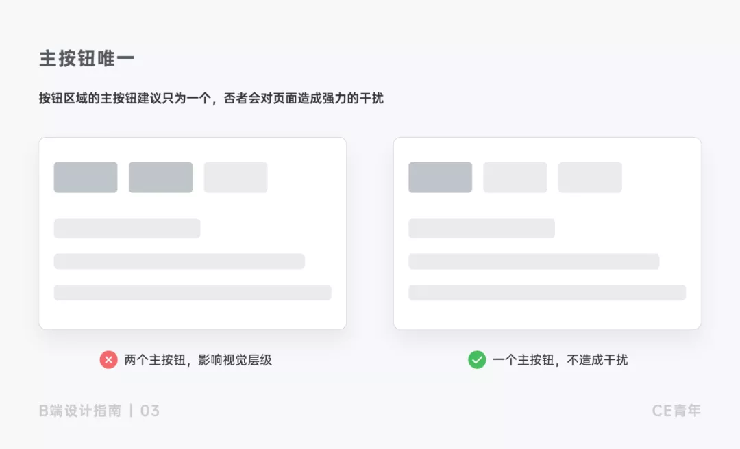 1.1在页面当中,按钮区域的主按钮最好只有一个,否则会对页面的主要功能造成干扰