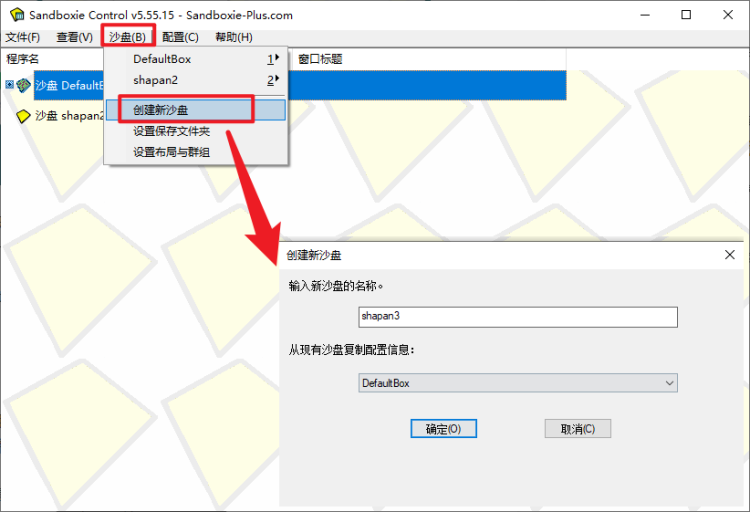 如果想开3个steam怎么办呢?那就创建3个沙盘。点击沙盘-创建新沙盘-输入沙盘名字-确定。