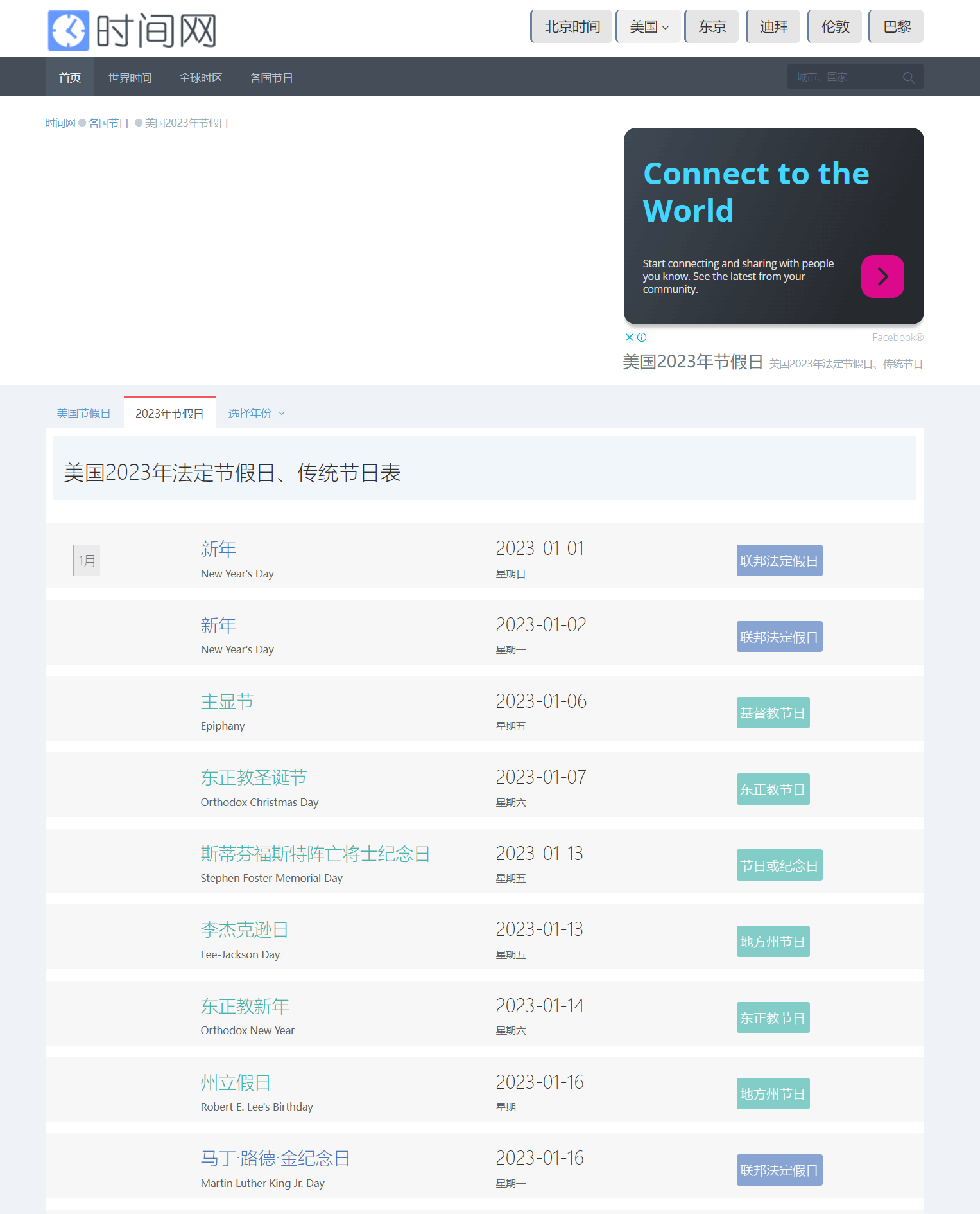 查询各国节假日时间
