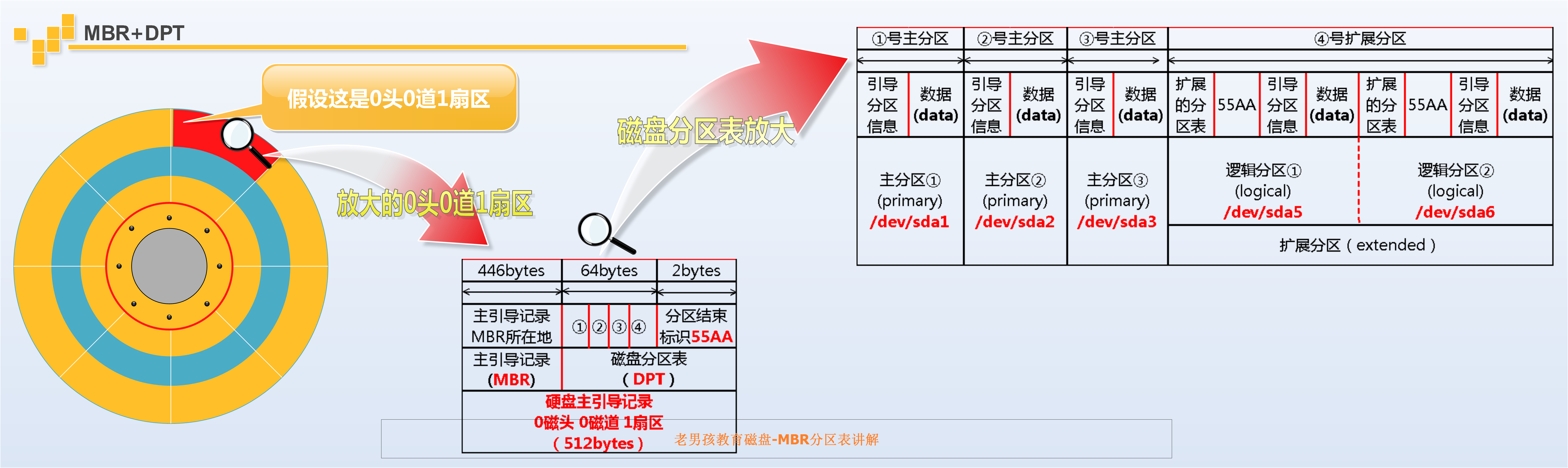 #Linux系统磁盘名字的命名规则##物理服务器...sata/sas/pci-e/ 接口的硬盘都是/dev/sd?开头的##云服务器/dev/vd? 开头##第1块硬盘/dev/sda##第2块硬盘/dev/sdb#Linux系统磁盘分区名字的命名规则#主分区或扩展分区 1-4/dev/sda1-4#逻辑分区从5开始/dev/sda5#第3块sata硬盘的第1个主分区/dev/sdc1#第4块sas硬盘的第2个逻辑分区/dev/sdd6