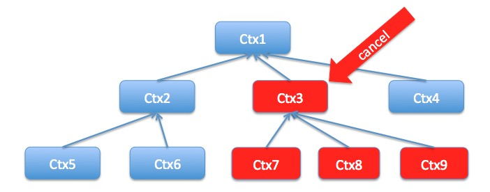 <br />可以看出,cancelCtx也是一棵树,当触发cancel时,会cancel本结点和其子树的所有cancelCtx。