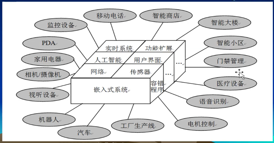 广而言之,凡是带有微处理器的专用软硬件系统都可以叫嵌入式系统。(或带有CPU的电子产品都叫嵌入式系统:手机、智能冰箱、智能手表)