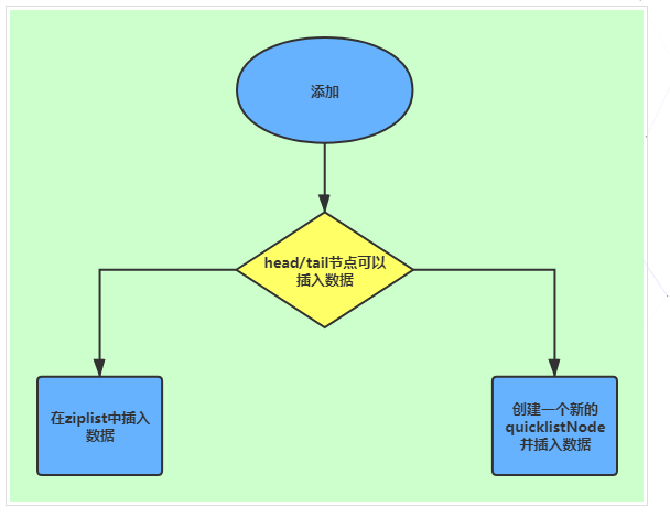 ziplist太大了,那么新创建一个quicklistNode节点(对应地也会新创建一个ziplist),然后把这个新创建的节点插入到quicklist双向链表中。