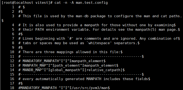 - -A:输出包括控制字符(换行符、制表符等)