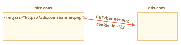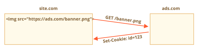 2、与 banner 一起,ads.com的远程服务器可能会设置带有id=1234这样的 cookie 的Set-Cookieheader。此类 cookie 源自ads.com域,并且仅在ads.com中可见: