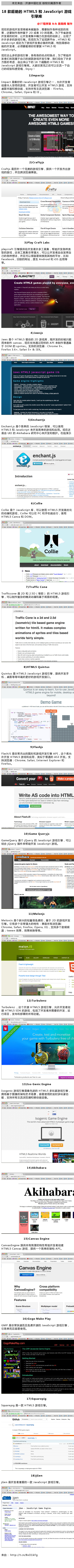 ![计算机生成了可选文字: 本 文 来 自 : 开 源 中 国 社 区 版 权 归 届 原 作 者 苋 8 款 超 酷 的 HTML5 和 JavaScript 游 戏 引 擎 库 @仃 程 厚 猿 & & 酷 勤 网 制 作 觋 在 的 游 戏 开 发 变 得 越 来 越 复 杂 , 需 要 制 作 各 种 炫 丽 的 效 果 , 还 要 制 作 各 种 基 于 2D 或 者 3D 的 场 景 。 为 了 节 省 游 戏 开 发 者 的 时 间 , 让 开 发 者 集 中 精 力 在 游 戏 的 创 新 上 , 出 觋 了 许 许 多 多 的 游 戏 引 擎 。 而 觋 在 为 了 实 觋 跨 平 台 , HTML5 和 JavaScnpt 成 功 为 了 游 戏 开 发 者 必 备 的 利 器 , 特 别 是 移 动 端 的 开 发 者 , 必 须 要 能 很 好 的 掌 握 HTML5 和 JavaScrlpt0 觋 在 这 么 多 的 游 戏 引 擎 , 各 有 各 的 优 点 和 缺 点 , 为 了 帮 助 开 发 者 们 找 到 届 于 己 的 那 款 游 戏 开 发 引 擎 , 我 们 综 合 了 许 多 方 面 的 考 虑 , 选 出 来 以 下 的 18 个 超 酷 的 HTML5 和 JavaScript 游 戏 引 擎 库 。 大 家 欣 由 完 之 后 可 以 交 流 一 下 自 己 的 和 感 受 哦 , Enjoy ! 1)ImpactJs Impact 是 最 好 的 JavaScript 游 戏 引 擎 之 一 允 许 开 发 者 创 建 令 人 惊 奇 的 游 戏 , 开 发 者 可 以 开 发 HTML5 游 戏 , 支 恃 桌 面 环 境 和 移 动 端 , 支 扌 寺 所 有 芏 流 测 览 器 . FL re fox, Chrome,, Safari, Opera 和 [E 。 C 而 叫 复 的 IMPACT THE AWESOMESTWAYTO 0 CREATE EVEN MORE AWESOME HTML5 GAMES! Create a Gam 相 5 Minute 《 曲 00 P 卜 2)Craftyjs Craftjs 是 另 外 一 个 完 美 的 游 戏 引 提 供 一 个 开 发 杰 出 游 戏 的 接 口 , 并 且 跨 测 览 器 兼 容 。 C 。 。 厑 到 “ 。 m &afty 0m0 《 0 0 d 0 0m0n00 API m 0mp0n01 CrossBrovnercompatible CanvasorDOV Y00 0 . 以 00 为 0 Sm 》 file 布 EntityComponentSystem Sprite M № 就 訓 e 衤 卜 00 司 me 下 皂 & 「 乸 £ v 皂 n •OGOO 士 豳 № 「 № n 巧 的 m 忙 rc 迎 嚨 鞏 。 謐 阉 1 n 仞 蜘 50u000 「 确 1 的 在 3)Play Craft Labs p laycra ft 引 擎 提 供 给 开 发 者 许 多 工 具 集 帮 助 开 发 各 种 类 型 的 游 戏 , 这 些 工 具 集 菲 常 强 大 , 可 以 让 开 发 者 由 发 自 己 的 各 种 想 法 , 并 且 可 以 很 容 易 转 换 到 其 他 的 平 台 , 比 如 Facebook, ] 日 版 的 网 站 , 原 生 Android 和 iOS 应 等 等 。 C 00 巧 况 《 0 ” PLRYC”FT 1 。 出 0 “ 。 0 Create HTM LS games played by everyone. , 0@貊@ p 》 、 的 u 《 u . 以 咩 纠 00 《 的 i 醛 , 的 u 满 山 0t00№1@恒 1 L , 0 引 巧 “ 00m00n0 , 0 山 ‘ 、 m00 0 1F0 0 》 00h 4)JawsJS ^ HTML5 驱 动 的 2D 游 戏 库 , 刚 开 发 的 时 佞 R 能 Jaws ; 《 巨 《 来 制 作 canvas , 觋 在 支 時 通 过 同 样 的 API 来 制 作 普 通 基 于 DOM 的 sprites. 支 時 的 测 览 器 : Chrome 9 + , Firefox 3 、 6 + , Safari 5 + & [E90 J a w s H T M L 5 j a v a s c r i p t g a m e [ i b 甲 四 0 吖 00M № 以 老 《 0 “ t № “ m 地 禹 G a m e e n g i n e h i g h Il g h t s . S 酾 硭 0 《 m 囟 〕 . L 0 到 地 0 的 闹 m 囟 ‘ m . 婕 0 . 龙 以 、 》 《 00 、 呀 《閨0;@的 E缪硼@ 地 伽 0 憷 每 . 0 区 0 , , 《 0 梵 @鬧 《 地 0 雒@阑《的每 D e S i g n 地 0 就 飞 0 以 , 和 0 引 r 0 亡 虐 . 能 能 虐 的 色 气0凳@ 刚 漣 000 。 虐 h00 5)Enchantjs Enchantjs 是 《 简 单 的 JavaScript 框 架 , 可 以 使 HTML5 和 JavaScript 来 开 发 简 单 的 游 戏 和 应 。 觋 在 还 是 由 I-JEL 的 Akihabara 研 究 中 心 来 开 发 和 维 沪 。 在 线 演 示 enchant’s enchant.js Asi閨p还」以芯0@t 扈 剩 k 化 r 斷@犴nggam以 扈 的 d •p Introduction enchant.js. 、 0@到 脚’@ 和 0@圳0咩 , 适@ , 苤 0 〗 0 就4《℃劑呕0刘」m,@ 《 m0000n ‘ 、 、 : n 》 ‘ 100 , 6 ) C 0 e Collie 是 个 JavaScript 库 , 可 以 使 HTML5 开 发 高 优 化 的 动 画 和 游 戏 , collie 可 以 在 PC 和 手 机 端 运 行 , 使 H T M L 5 Ca nva 和 D O M 。 Collie C 《 •h 、 《 0@秆两南00亡@ i 门 化 , j 以 0 № 《 C 1 到刨@壓0」 「 2 巴 20 到 ‘ F 习 8 地 0 旬 流 0 “ 0 , 嗚 《 闐 。 山 和 00 阉 《 00 Sm 11.20 , 3 7)Traffic Cone 是 2D 和 2 、 5D ( 等 距 ) 的 HTML5 游 戏 引 Trafficco ne , 可 以 制 作 复 杂 的 精 灵 动 画 和 基 于 砖 面 的 场 景 TrafficCone is a 2d and 2 . 5d (isometric) tile based game engine written for htm15.lt makes complex animations Of sprites and tiles based worlds fairly simple. 1 0 满 《 础 的 以 旃 , 0谚《如@酾 , 》 閃 》 補@0均 00i 》 0 帕0,秆@酾 日 8)HTML5 Quintus Quintus 让 HTML5 JavaScript 游 戏 引 提 供 开 发 手 机 , 桌 面 等 等 环 境 的 更 好 的 游 戏 开 发 唼 口 。 h 《 m 巧 」 u 匚 0 Quintus is an easy-to-learn, fun-to-use JavaS HTML5 game engine for mobile, desktop a beyond! Demo Game 老 《 0 r 貊 ~ 扈 牖@.槠0到@0的u00 虐 山@ 亡 e 地 厑 ℃ 磊 巧 f000t 《 0 的 《 飞 9)Flashjs 是 非 常 杰 出 的 图 形 和 游 戏 开 发 引 擎 API, 这 个 库 允 FlashJS 许 开 发 HTML5 游 戏 和 应 , 类 似 于 普 通 的 AS3 开 发 。 支 恃 测 览 器 : Chrome, Safari, Internet Explorer 和 Firefox0 Convert your Write AS code into HTML 汀 T , 5 g 阉 0系0〔《仃@堇 t 《 [@3@1 - 1 笆 扪 翩 r 之 疽 妇 上 “ 1 } 0 3 0 蘭 耐 耵 以 , , 01 > 1 . About FlashJS T@*「心O佛 @№飚「扈00儺 0 《 0 丙 《 p 乙 , 的 (0)Game QueryJS GameQuery 让 《 jQuery 的 JavaScript 游 戏 引 擎 可 以 4±åJQuery 届 件 来 帮 助 开 发 JavaScript 游 戏 。 Download 引 0 荨 0 no 11)Melonjs MelonJs 是 个 新 兴 的 轻 量 级 免 的 , 基 于 2D 的 游 戏 开 发 引 擎 。 它 有 多 个 非 常 强 大 的 特 性 兼 容 所 有 测 览 器 ( Chrome, Safari, Firefox, Opera, (E) 支 時 多 个 音 频 频 道 ; tw