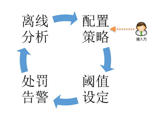 以上是目前系统痛点,更关键的是如果单纯的从系统层面优化没有多大意义。因为对业务方来说是想要需要知道策略的实际效果,进行风险识别时是否影响到了用户体验,是否预防到了真正风险,这些都没有一个离线分析的指标做参考。所以下图所示的一个反馈闭环很重要: