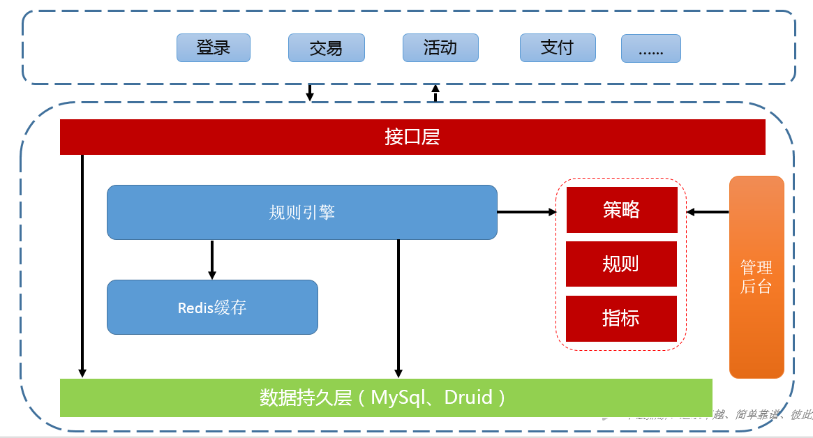 以上就是最近一段时间梳理的风控系统架构。目前只是对原有的逻辑进行拆分,为后期离线分析打下基础。后期会利用elasticsearch做一个超级cube的指标系统,参考平安spark+hive+es的方案,对用户历史行为轨迹做不同维度的分析。让业务方对用户更了解,逐步形成数据驱动风险策略的设定。