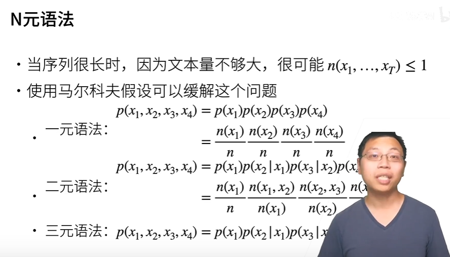 实现 N-gram语法一元语法:t=0,每个词都是独立的二元语法:t=1,每个词只依赖于前两个词三元语法:…好处:给任意长的序列,需要看的子序列是固定的,可以把每个词都存下来,比如给定一个1000的词典,二元语法则对应着1000*1000的存储空间复杂度,时间复杂度: 实现在seq2seqdata中,序列是一个一个排序下去的,最大的问题在于:每遍历一次,所有的数据可能都会被用过很多次,数据会存在于多个序列中,而不是仅仅属于一个序列 在语言模型中,随机的切成几段不让epoch更长
