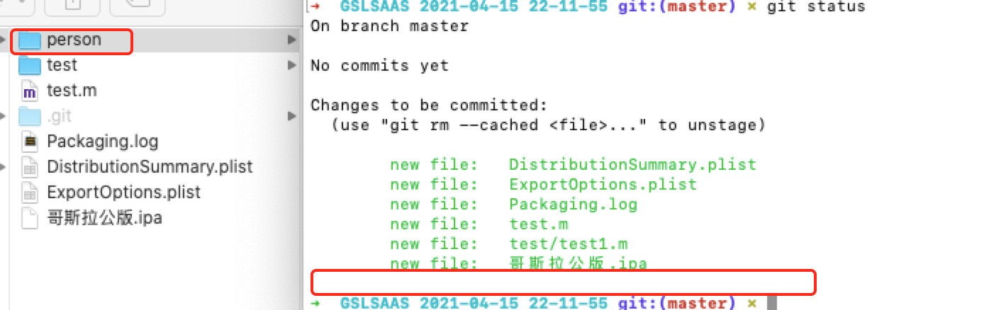 我们可以在做一个实验来证明一下:单独建立一个文件夹,然后`git status`可以看到并没有提示出来有需要存放暂存区的东西。这就是因为在**git 中没有存储文件夹,只有文件**。<br />