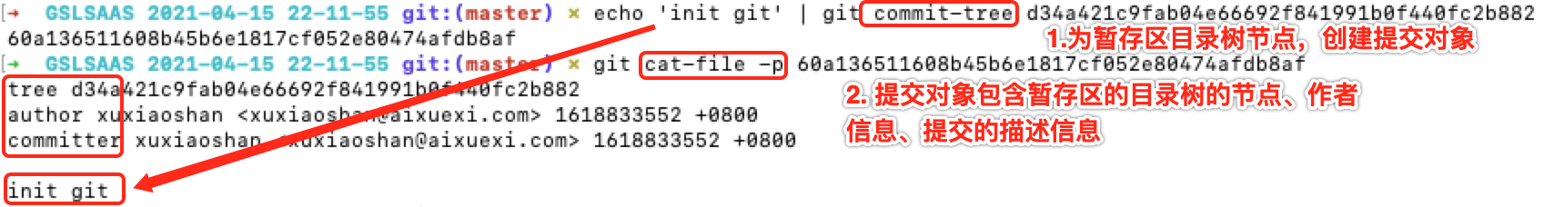 1. 将`git add `过程中,`git write-tree `生成的目录树的节点,使用命令`git commit-tree`生成提交对象