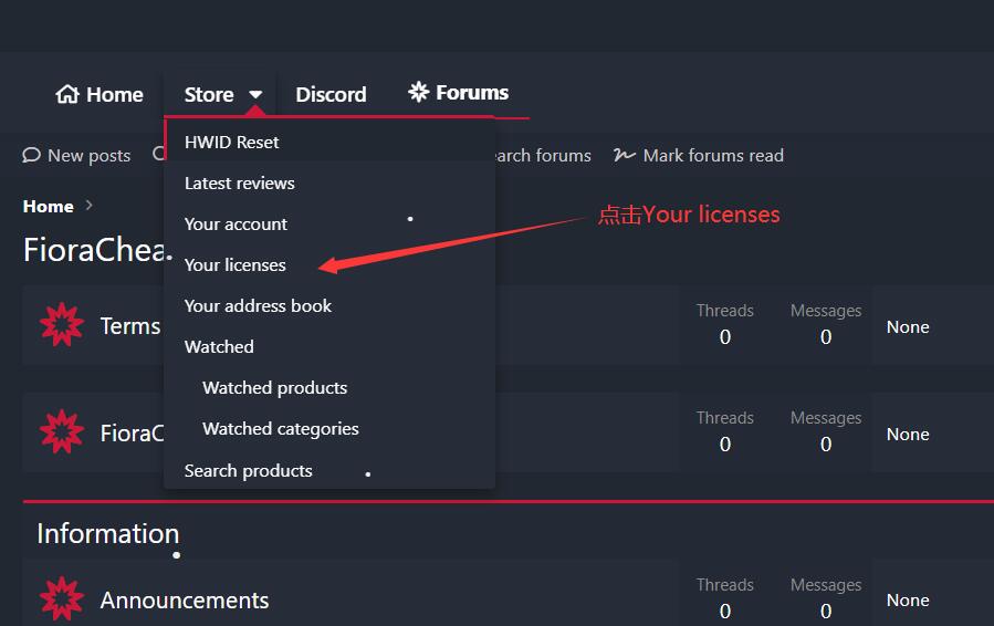 6.看图点击Home先返回首页,然后点如图Store旁边小箭头,下拉菜单选Your license