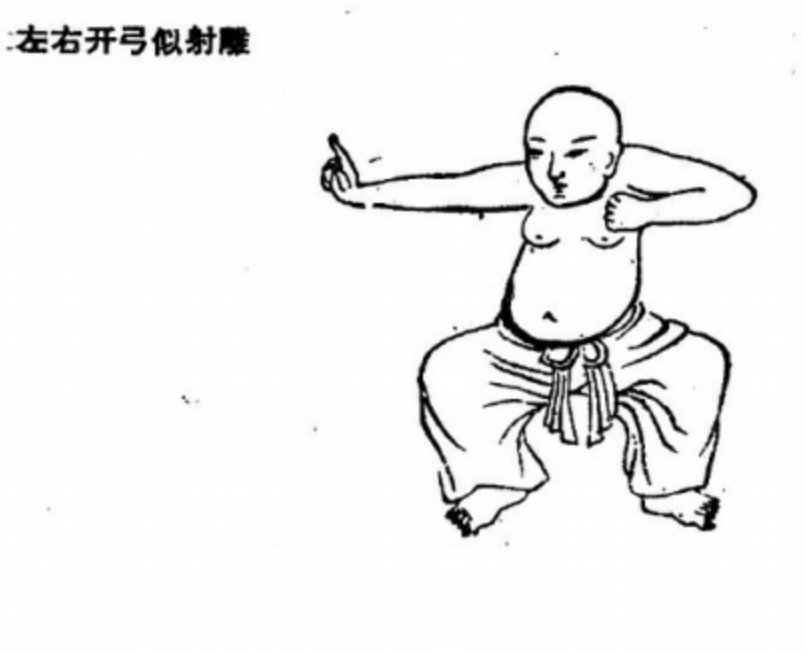 <br />八段锦第一式,两手托天理三焦:三焦,是指人体上、中、下三焦,属于六腑之一,位于胸腹之间,其中胸膈以上为上焦,胸膈与脐之间为中焦,脐以下为下焦。人体三焦主司疏布元气和流行水液。这一式为两手交叉上托,拔伸腰背,提拉胸腹,可以促使全身上下的气机流通,水液布散,从而周身都得到元气和津液的滋养。<br /><br />八段锦第二式,左右开弓似射雕:这一式展肩扩胸,左右手如同拉弓射箭式,招式优美;可以抒发胸气,消除胸闷;疏理肝气,治疗胁痛;同时消除肩背部的酸痛不适。对于那些长期伏案工作,压力较大的白领人士,练习它可以增加肺活量,充分吸氧,增强意志,精力充沛。<br />