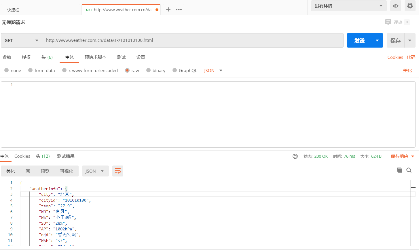 请求URL:http://www.weather.com.cn/data/sk/101010100.html