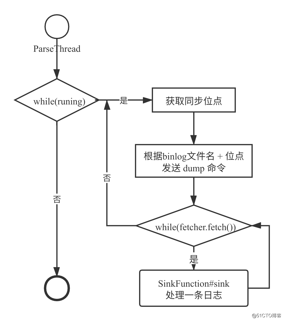 - Connection获取上一次解析成功的log position(如果是第一次启动,则获取初始指定的位置或者是当前数据库的binlog log position)Connection建立连接