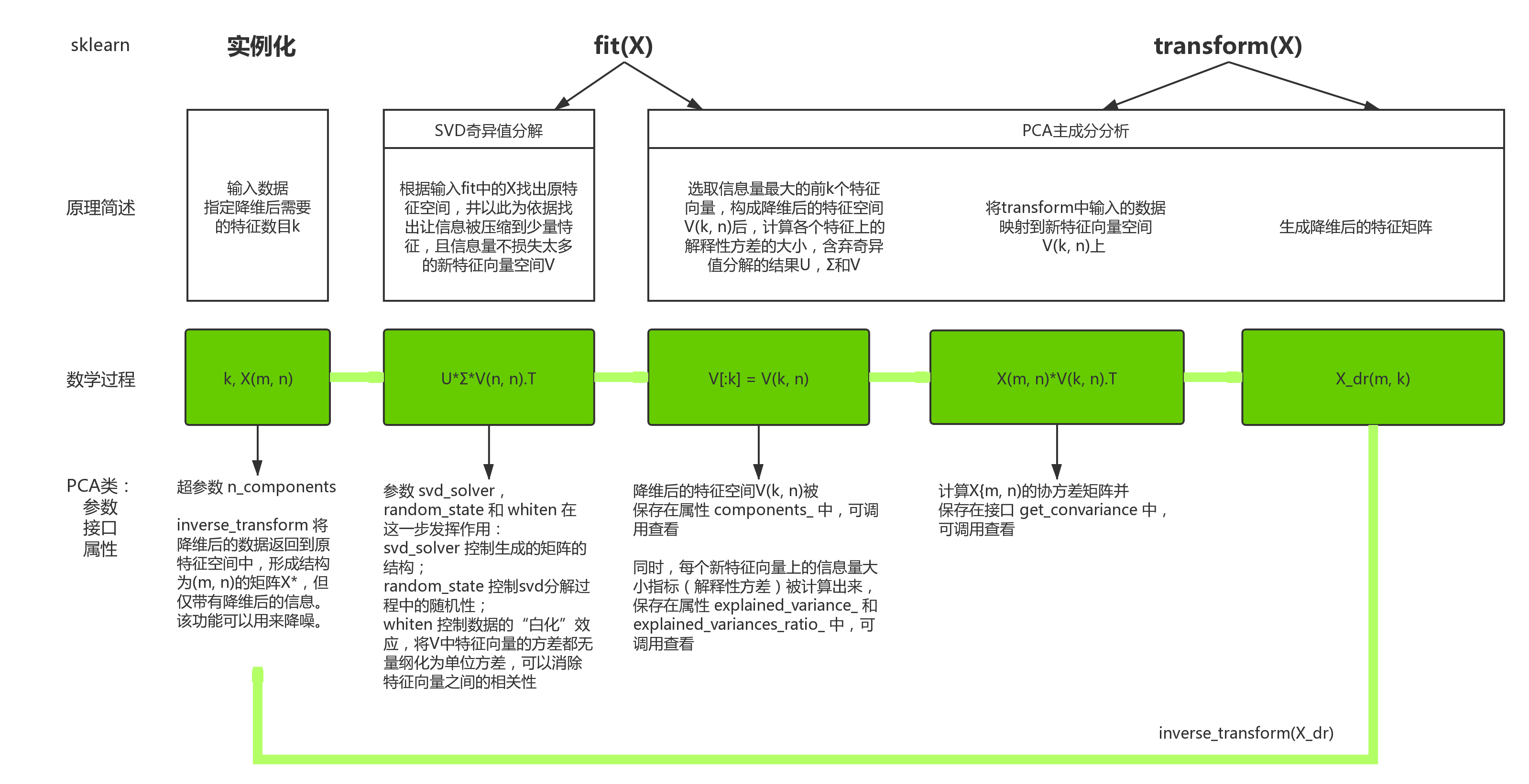 - inverse_transform,不是复原,而是将被降维的数据升维