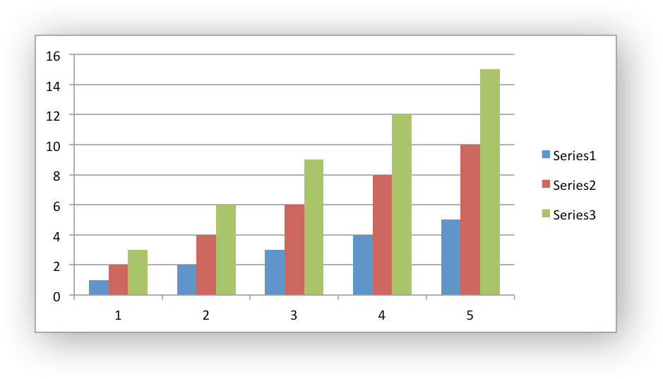 $config = ['path' => './tests'];$fileObject = new \Vtiful\Kernel\Excel($config);$fileObject = $fileObject->fileName('tutorial.xlsx');$fileHandle = $fileObject->getHandle();$chart = new \Vtiful\Kernel\Chart($fileHandle, \Vtiful\Kernel\Chart::CHART_COLUMN);$chartResource = $chart->series('Sheet1!$A$1:$A$5') ->series('Sheet1!$B$1:$B$5') ->series('Sheet1!$C$1:$C$5') ->toResource();$filePath = $fileObject->data([ [1, 2, 3], [2, 4, 6], [3, 6, 9], [4, 8, 12], [5, 10, 15],])->insertChart(0, 3, $chartResource)->output();