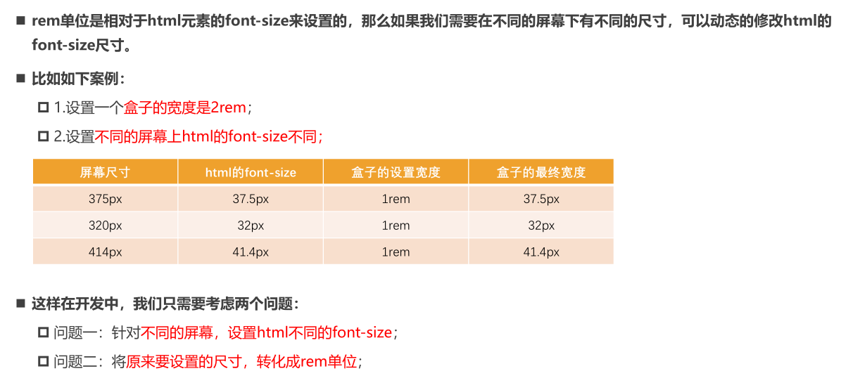 rem 方案总结一句话就是:根据屏幕大小设置不同的 html font-size,从而让 rem 计算出对应大小。