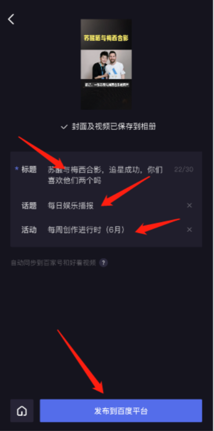 标题是视频标题,取一个吸引人的,话题一定要选择(娱乐里面选择人看的多的话题),活动自己加入一个,别加入和 Ai 相关的