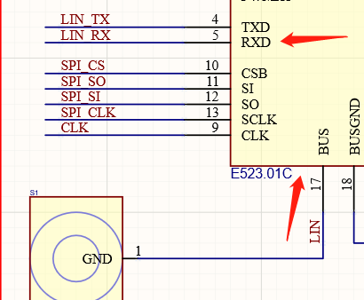 LIN接口直接与驱动芯片的BUS相连,用于PWM输入。输入的PWM被通过LIN_RX引脚传递给主控芯片。