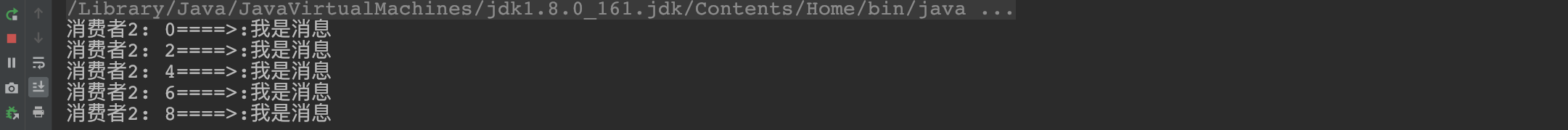 channel.queueDeclare("hello", true, false, false, null);for (int i = 0; i < 10; i++) {channel.basicPublish("", "hello", null, (i+"====>:我是消息").getBytes());}
