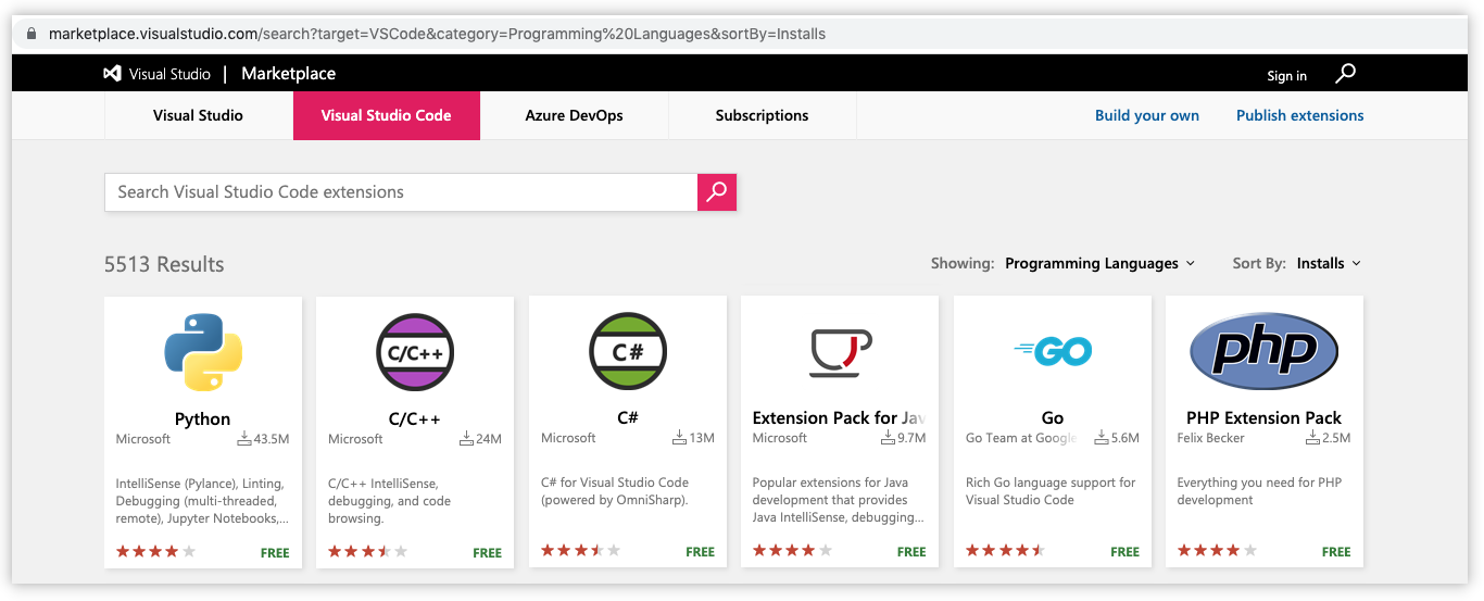 - 插件扩展:支持第三方插件,功能强大。既有中心化的插件市场,也可以直接在 VS Code里搜索你想要的插件。