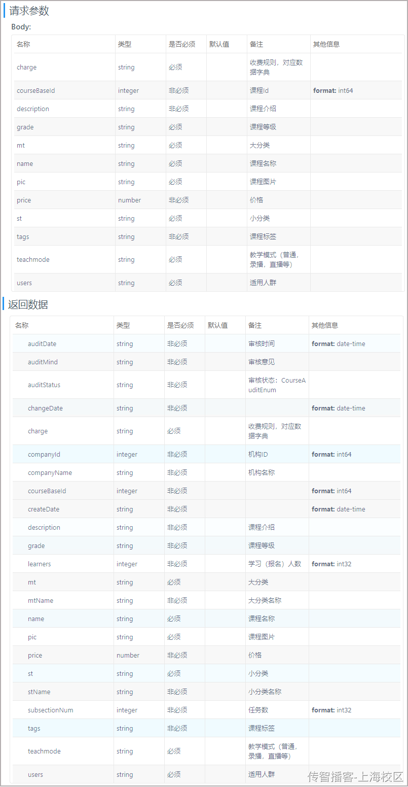 数据库表所涉及到为 xc_content 中的 course_base 表。之前在信息查询中有所介绍,在此对表结构和实体类PO类不再介绍。