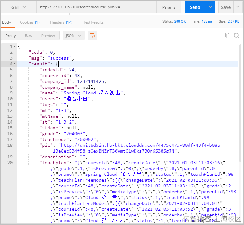 返回参数为 CoursePubIndexDTO 数据,之前已经再课程发布已经定义,无需定义。