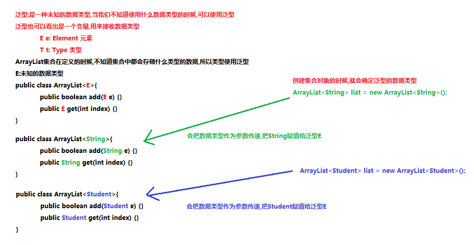 - 好处:避免了类型转换的麻烦,存储的是什么类型,取出的就是什么类型;把运行期异常(代码运行之后抛出的异常),提升到了编译期(写代码的时候报错)。
