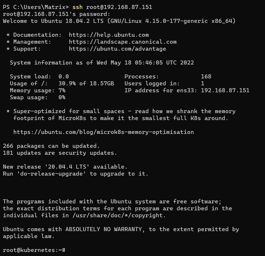 # ssh 用户名称@IP地址ssh matrix@192.168.87.151