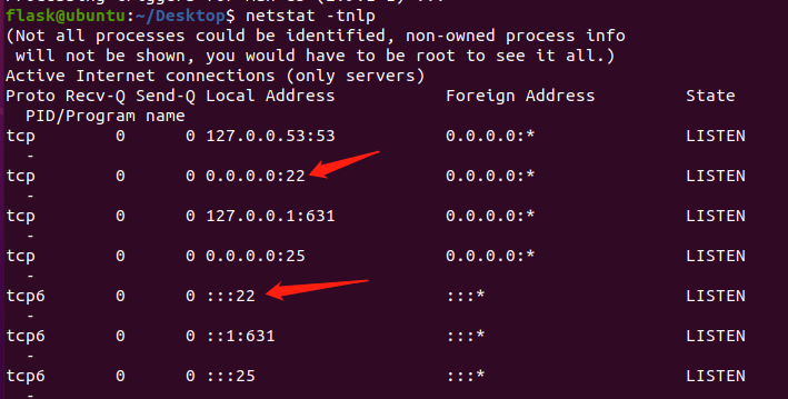 安装完成之后使用netstat -tnlp 查看是否监听了22端口。