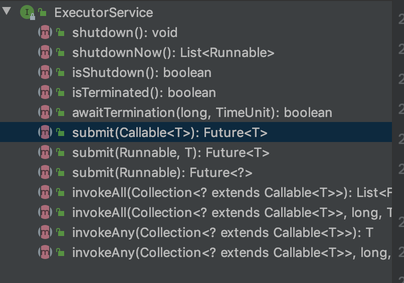 Executor只有execute方法来提供很简单的功能,它的子接口ExecutorService有更多的扩展功能,在看ExecutorService之前,我们先来看一下Future:
