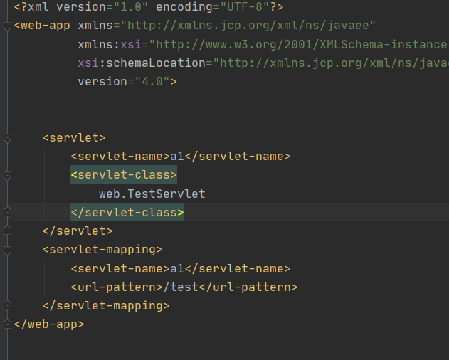 (2) 在web.xml⽂档中配置映射关系 XML中配置好这个Servlet的映射关系: