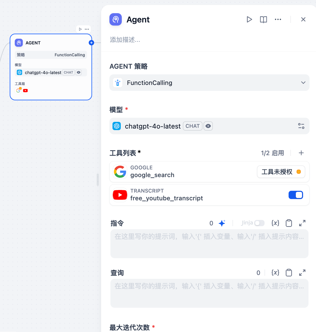 最大迭代次数: 设定 Agent 的最大执行步数。