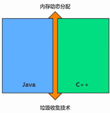 - Java 和 C++语言的区别,就在于垃圾收集技术和内存动态分配上,C++语言没有垃圾收集技术,需要程序员手动的收集。