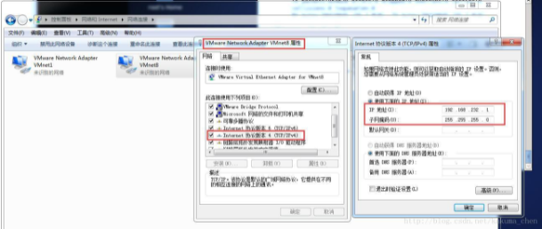 查看网络适配器的属性, 默认使用VMnet8网络适配器: