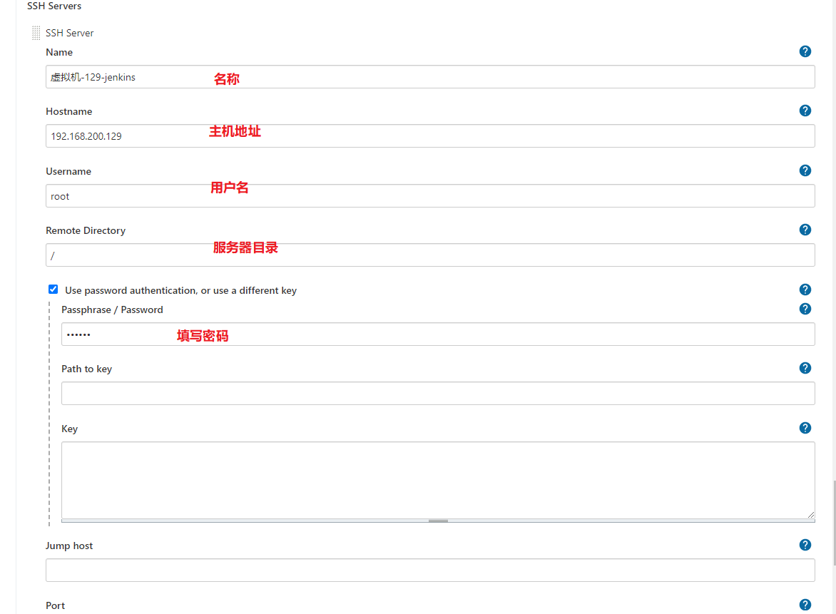 | Remote directoty | 发布的目录 (系统配置的路径/这个目录, 由于我配置ssh根路径写了/,所以我这里写的路径是usr/local/nginx/jenkins/www/ocrweb) |