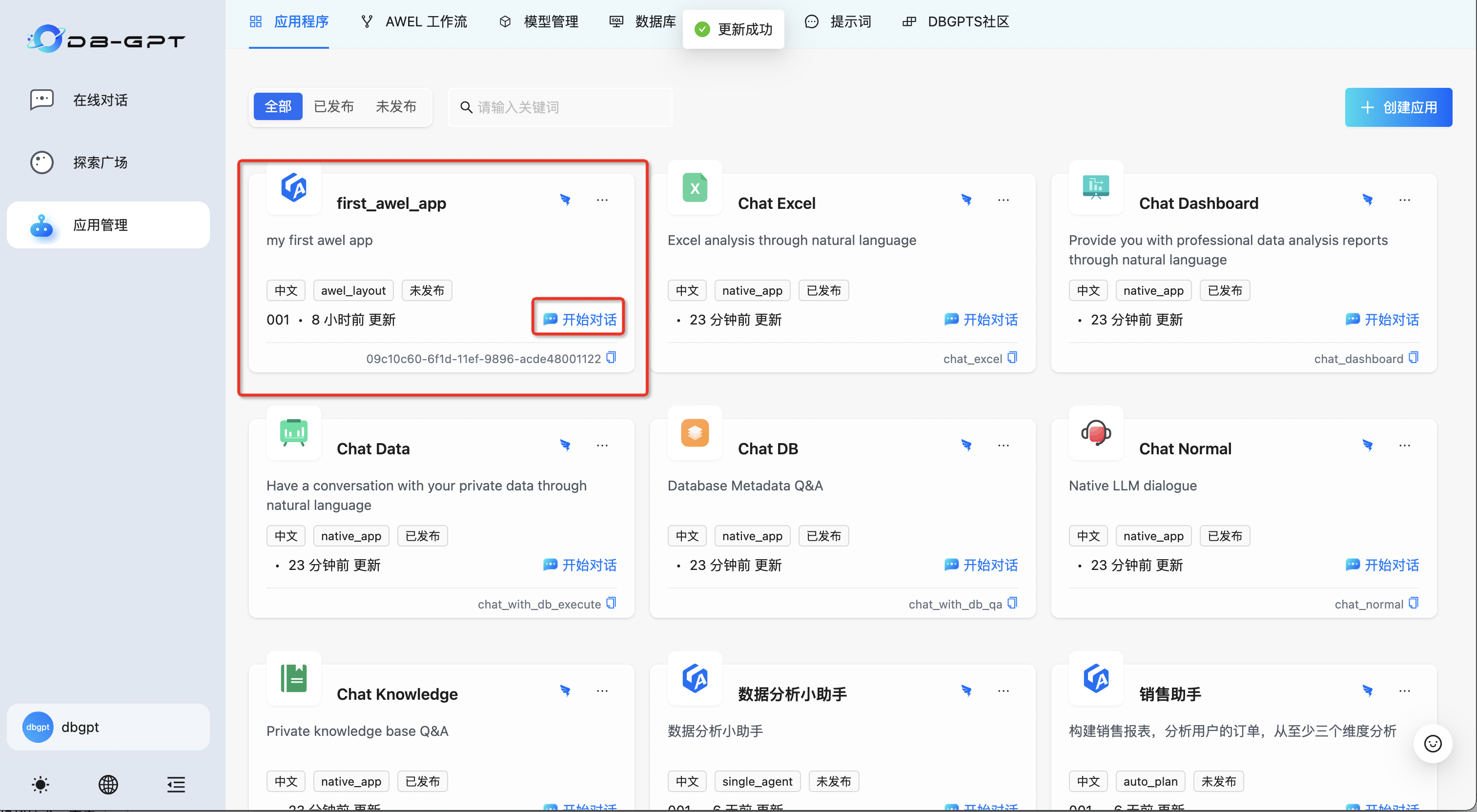 - 新增应用,选择awel_layout工作模式,绑定创建好的awel_flow