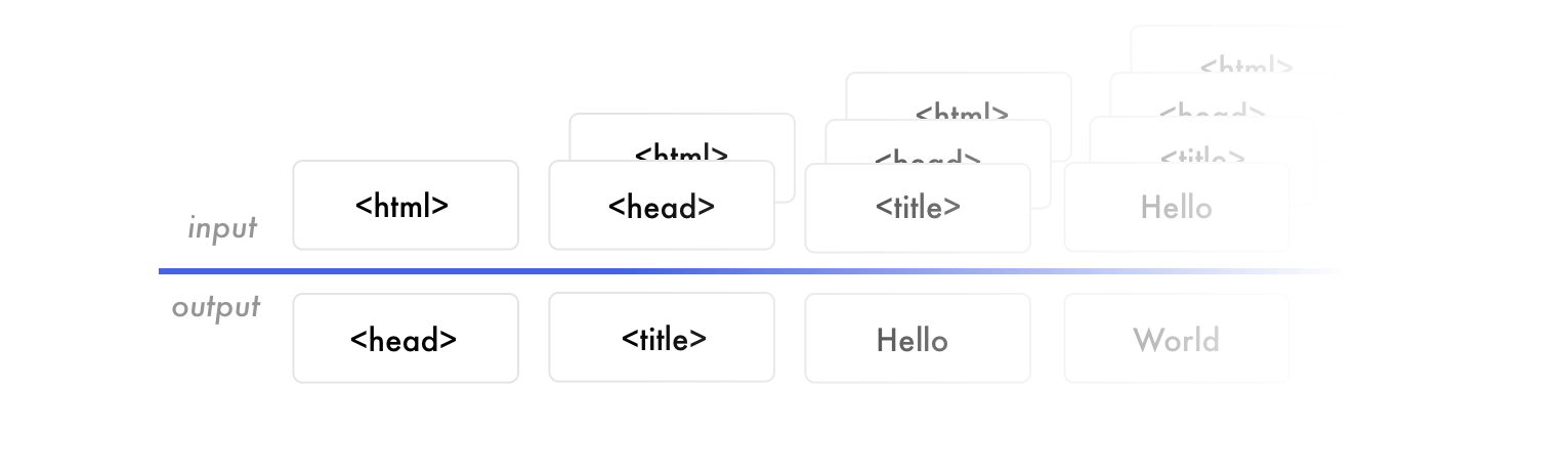 大致的意思是,HTML 标签的输出,是以一个标签和 screenshoot 为输入得到下一个标签,然后再以已有的标签再去推测后续的标签。