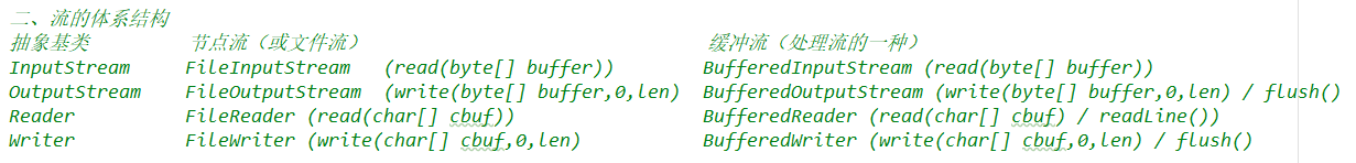 处理流:不直接连接到数据源或目的地,而是“连接”在已存在的流(节点流或处理流)之上,通过对数据的处理为程序提供更为强大的读写功能