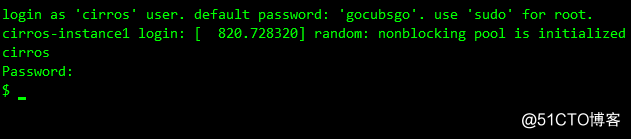 按回车,会出现实例的登录提示符,使用 cirros 用户和提示的密码登录