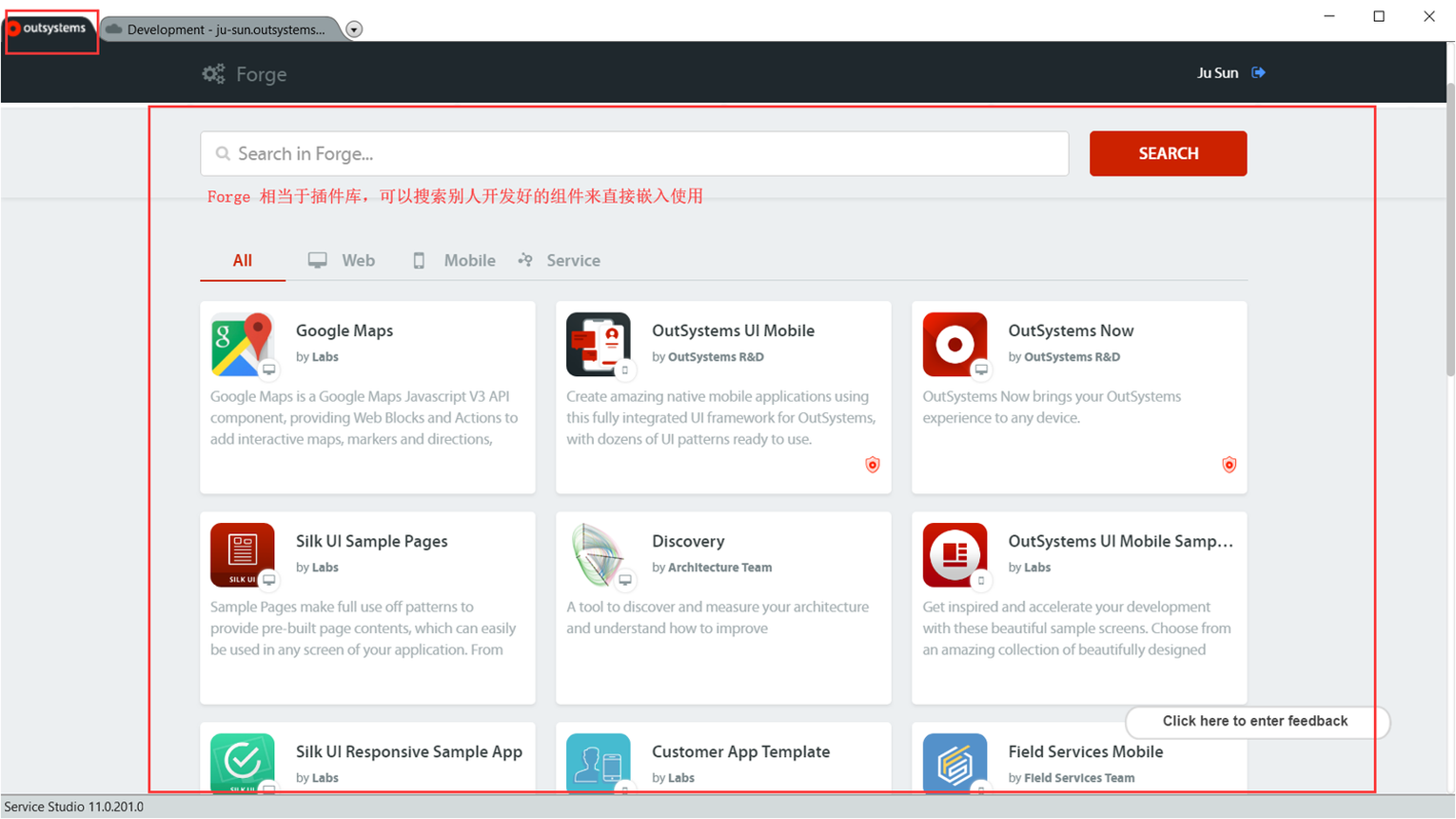 官网上也可以找到forge和community来帮助你使用outsystems进行工作。forge是一个类似于market的东西,在上面可以下载开源组件让你加快开发速度。community是一个社区,你可以和别人交换tips、讨论话题、问问题。