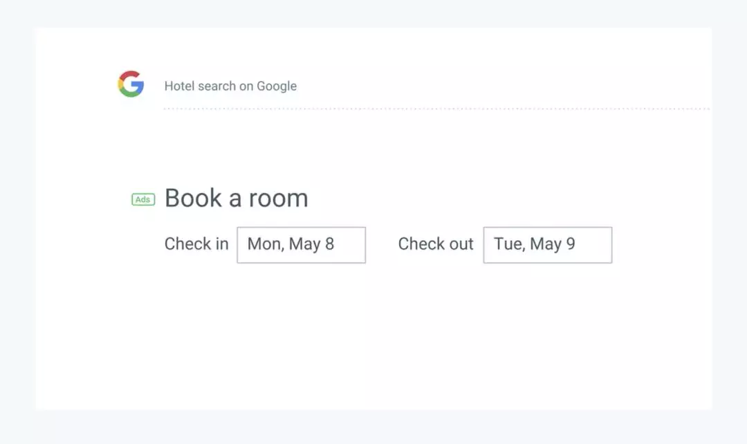这是一个旅店预定的广告,一开始Google使用的是“Book a room(预定房间)”这个词汇来吸引用户点击,但这个词太过武断了。