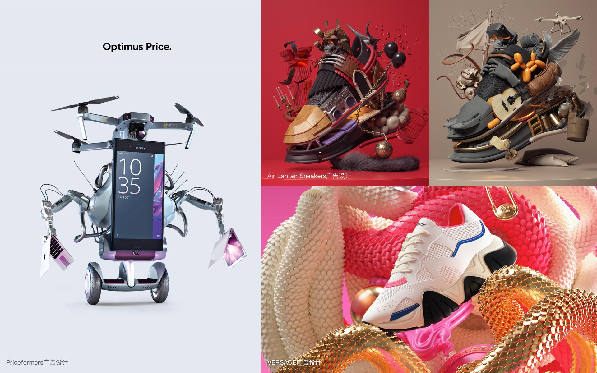 3D风格可最大限度还原现实世界的材质、光效乃至物理运动规律,在设计师的奇思妙想下,如神笔马良手下画笔般,将抽象与现实完美结合,呈现极具脑洞的“超现实”效果。这种超现实尤其体现在动态设计上,通过在仿真实空间中呈现现实里无法实现的动态,带给观者奇妙的视觉冲击力。