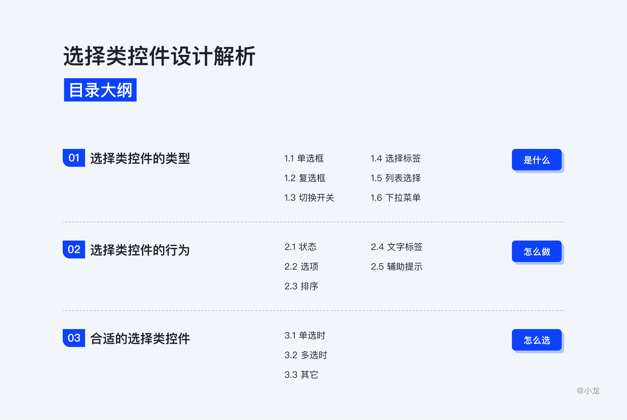 本文主要研究选择控件的设计细节,虽然是很常见的控件设计,但也有非常多需要注意的地方。能提炼总结常见事物的一般规律,这本身就是对自己已有知识理解加深的过程。